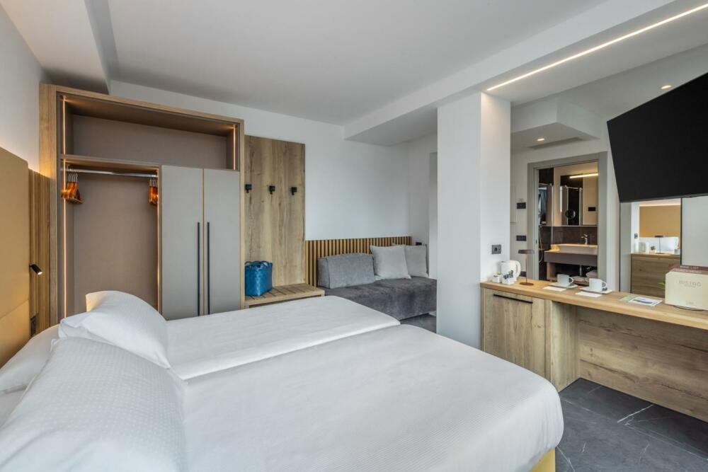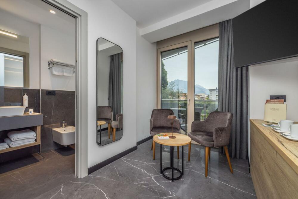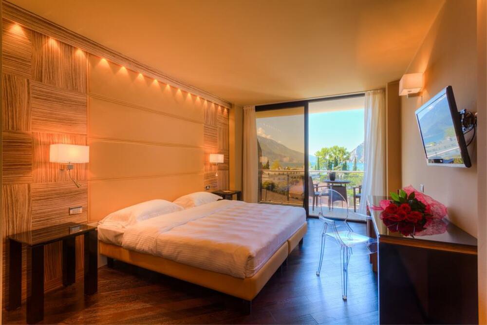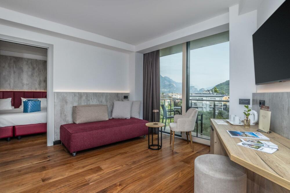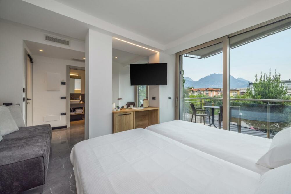 Das Garda Suite Hotel liegt nur wenige Meter vom Strand und weniger als einen Kilometer von der Altstadt von Riva del Garda entfernt. Das im Jahr 2024 komplett renovierte Hotel verfügt über geräumige Zimmer und Suiten, teilweise mit herrlichem Seeblick. Alle ausgestattet mit Balkon oder Terrasse, Holz- oder Keramikboden, Klimaanlage, LCD-Sat-TV, Minibar, Safe, Bademantel und Hausschuhen, Pflegeset, Poolhandtuch und kostenfreiem W-Lan.