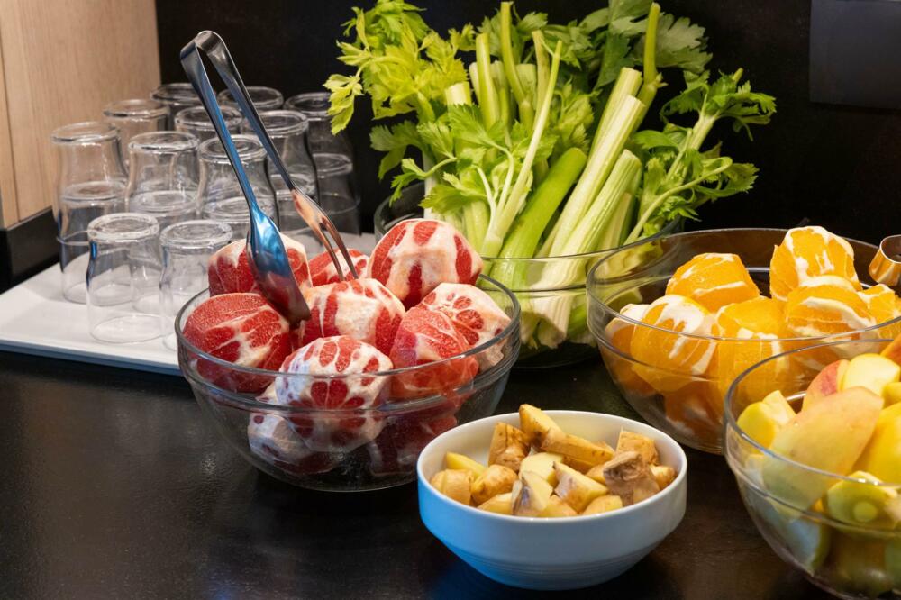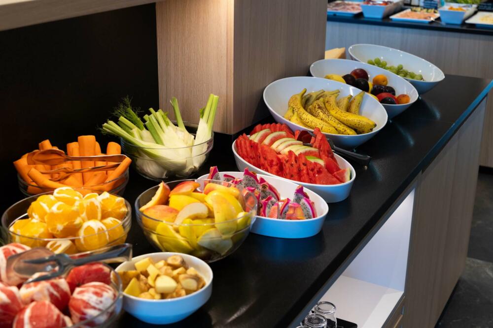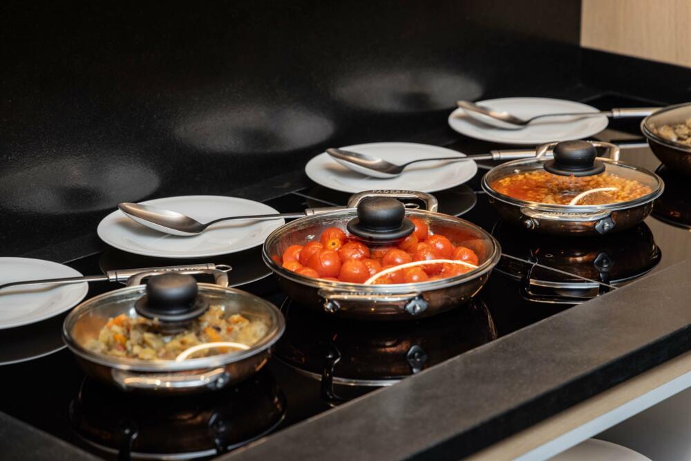 Morgens wird ein Gourmet-Frühstücksbuffet mit süßen und herzhaften, sowie warmen und kalten Speisen serviert. Zum Mittagessen bietet die Hotelbar Snacks, Smart Lunchs und Aperitifs.