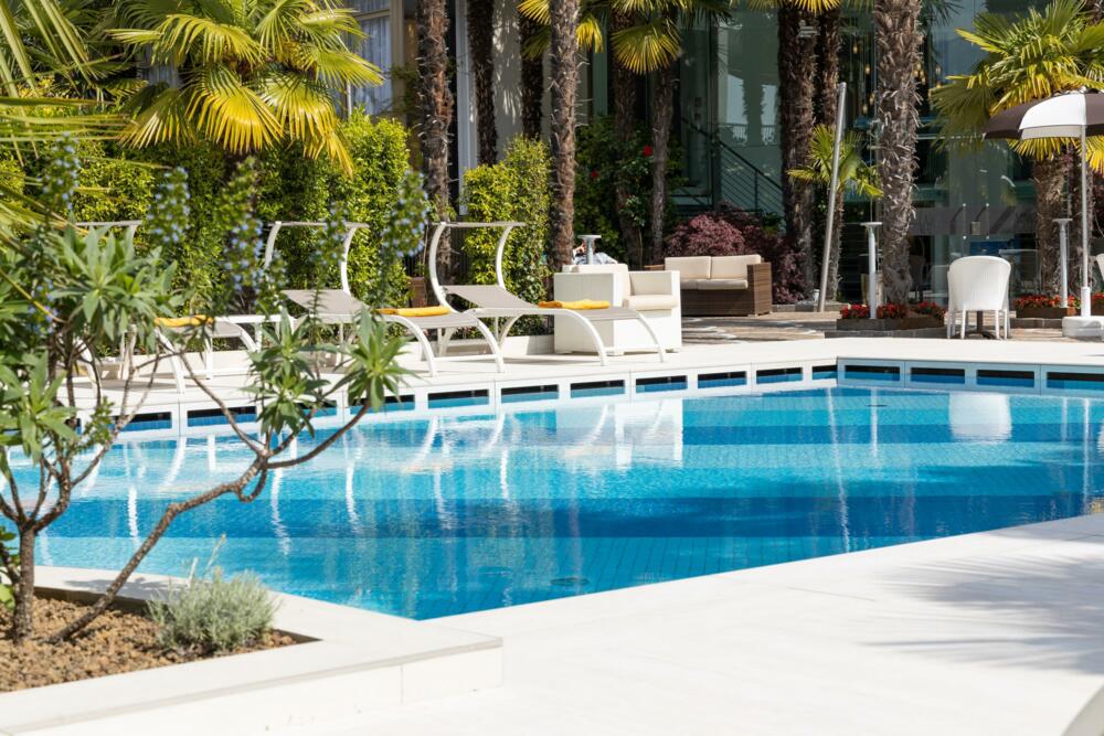 Den Gästen steht ein sonniger Außenpool mit Terrasse, Sonnenliegen und Sonnenschirmen zur Verfügung.