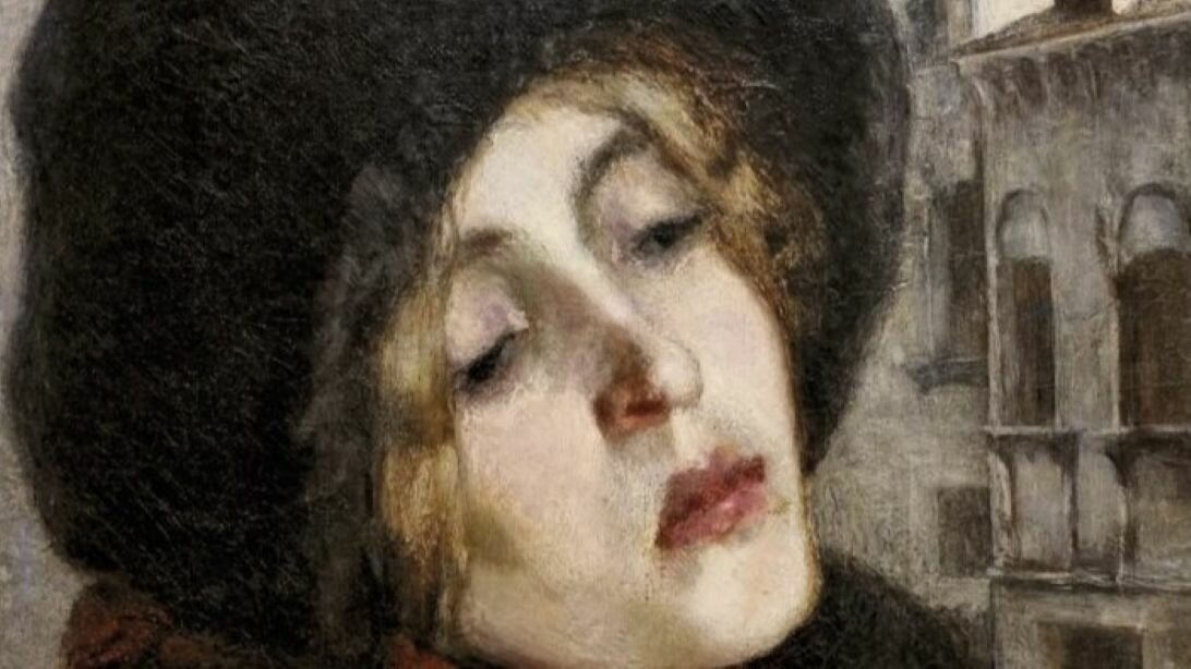 The exhibition begins with works from the 1880s, including pieces from the Navigli series such as Portrait of a Woman in Via San Marco.