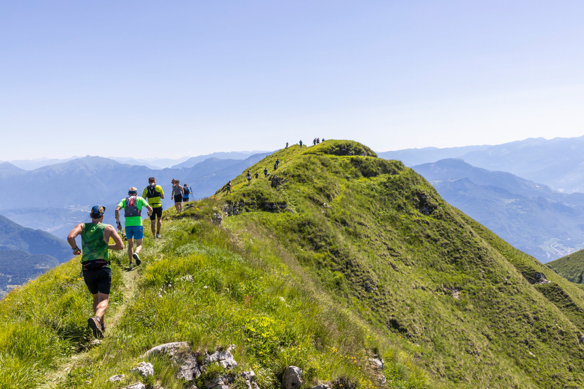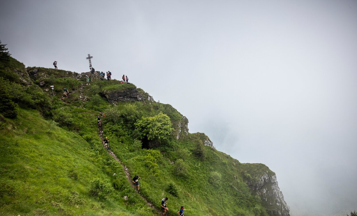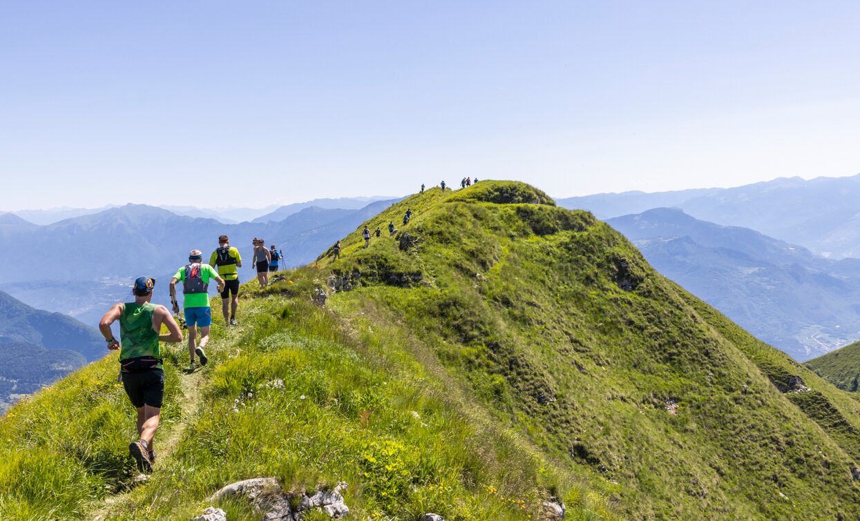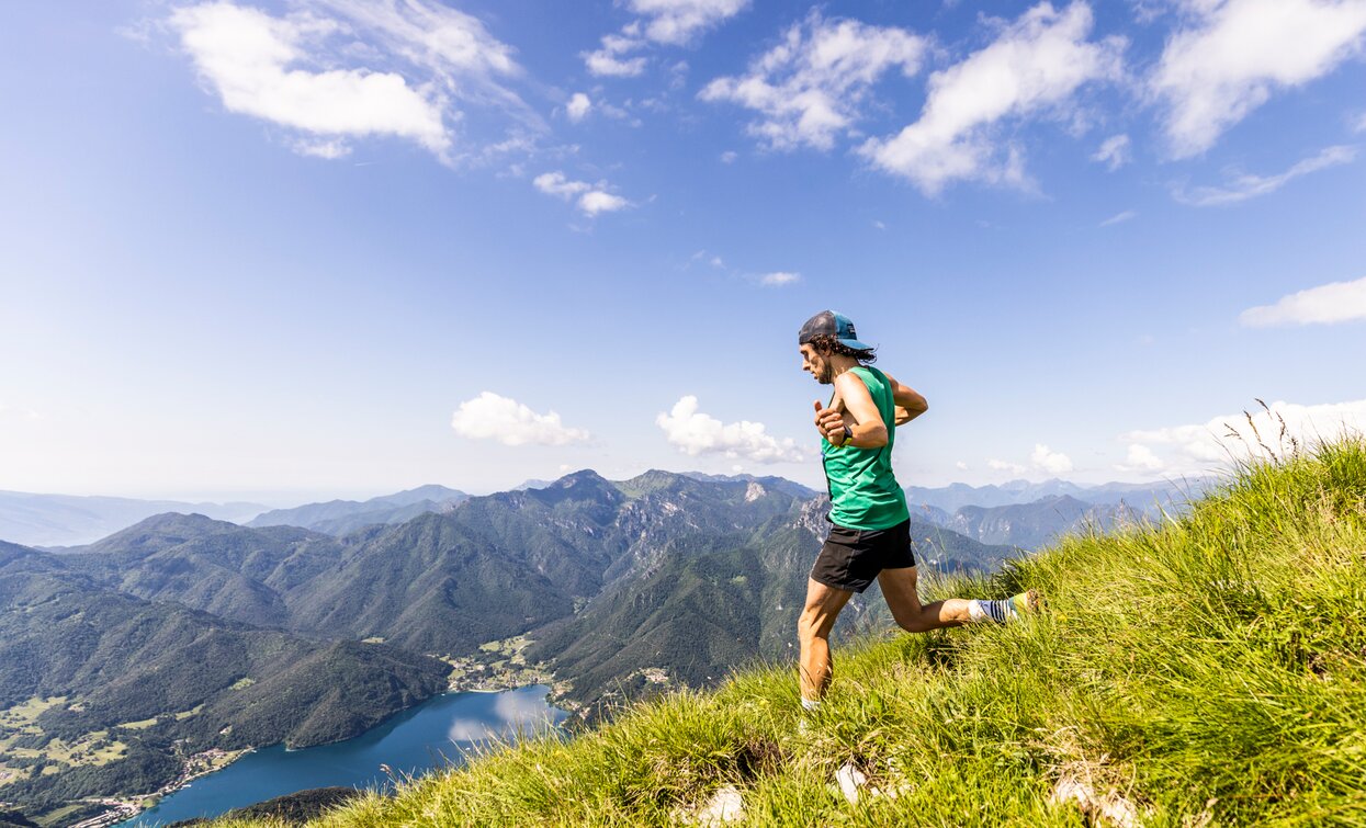 The trail climbs to high altitude before following the panoramic ridgelines of the Ledro mountains – the famous greste. A constant rhythm of ups and downs leads runners across Cima Parì, Cima Sclapa and Cima d’Oro, all part of the Pichea–Rocchetta ridge, a protected natural area within the Alpi Ledrensi Reserve Network, also recognised by the UNESCO MAB programme for its outstanding environmental value.