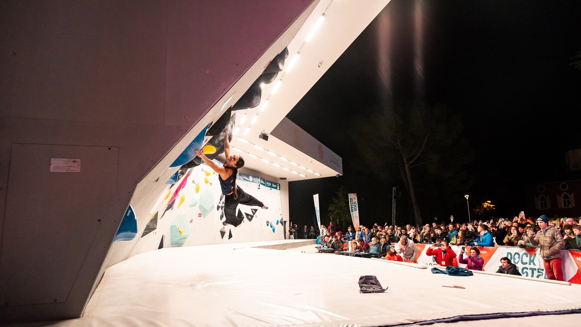 KO Boulder is one of the most exciting and unpredictable moments of Rock Master: a head-to-head bouldering showdown that keeps the audience on edge from start to finish.