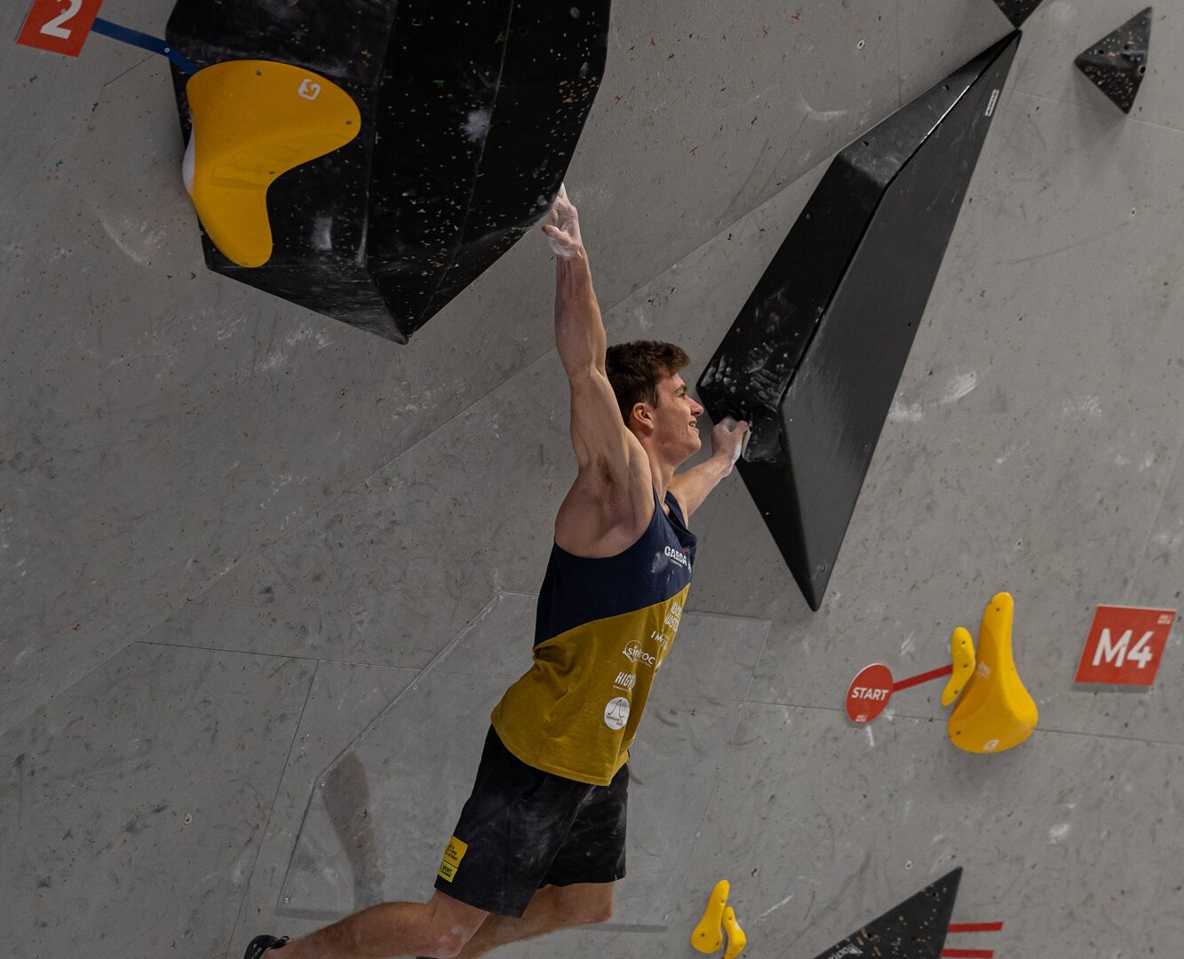 Each athlete has three attempts per bloc to reach the top. Rankings are based on height reached and number of attempts, with earlier results used as tiebreakers. After the first two blocs, the bottom two climbers are out. One more is eliminated after the third. Only three finalists make it to the last round, where everything is on the line. No points, no calculations: the first to top wins.